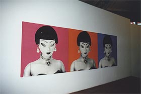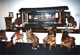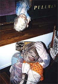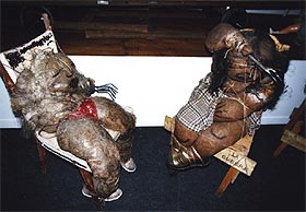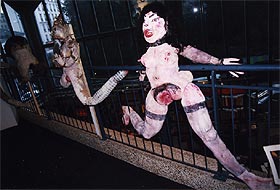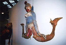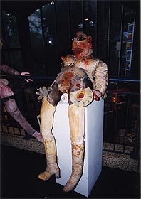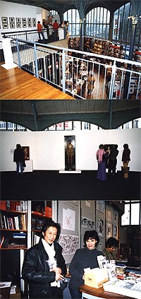・会場の様子。1Fは充実した書店とカフェ、 そして各民族の人形。2Fは現代作家の人形。 ・四谷シモンの人形は、会場の一番中心の空間に4体展示されていた。そのすぐ隣には、ハンス・ベルメールの写真がいくつか並べられていた。 ・今回のキュレーターは、Martine Lusardyさん。マルティーヌさんは、今回、シモンの人形とシモン自身の大ファンになったという。 いっしょに写っているのは、シモンとは状況劇場で、いっしょに役者活動を送ったこともある大月雄二郎。 |