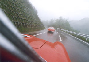5月15〜17日 ツール・ド・フランスの日本版のようなジャパン・ヒストリック・カー・ツアーの第1回目が催された。横浜の赤レンガを出発して、新緑の長野の山々を走り、御殿場がゴールという3日間のツアーだ。 私はK・Yさんと Ferrari 250 GT Lusso で、出場した。快適な旅だった、と言いたいところだけど、日々、雨が降り、オープンのクルマも大変だろうけど、クローズド・ボディのクルマだって、昔の車なので、デフロスターもたいして効かず、始終、ウィンドウが曇ってしまって、大変なのだった。 それでも雨や霧の中を走るクルマのシルエットは美しく、私たちのルッソや、同じフェラーリの 250 GTSWB や 250 GTO/64 が連なって走る姿は、道端で見かけた人にとっては、夢のような光景だっただろう。 |